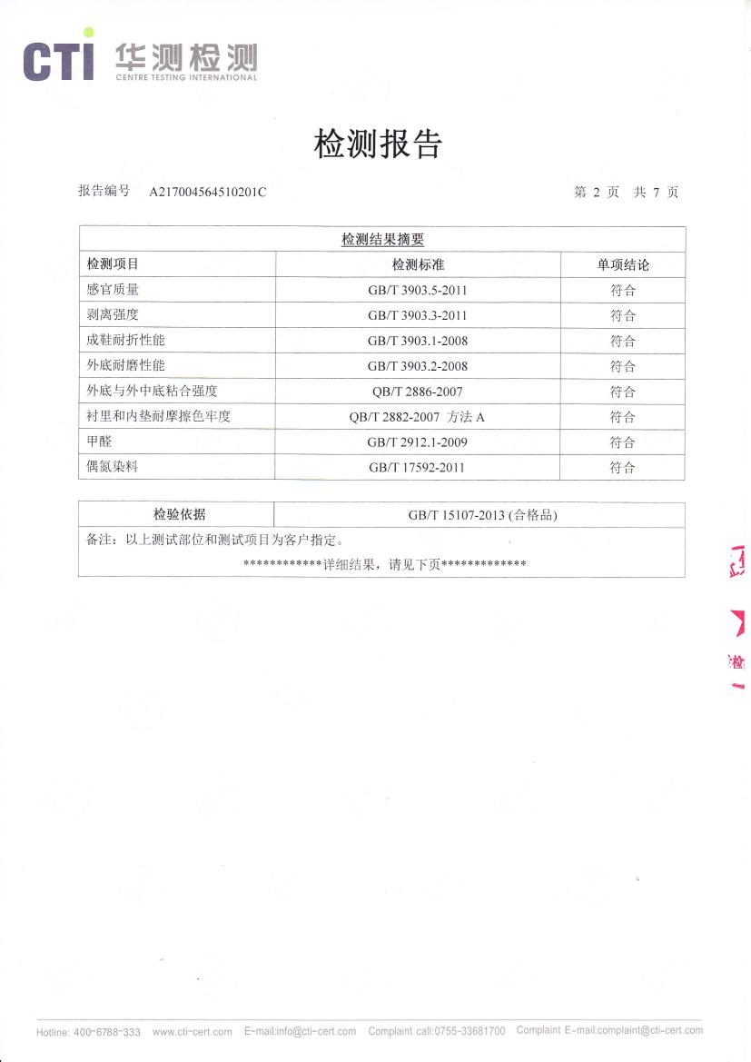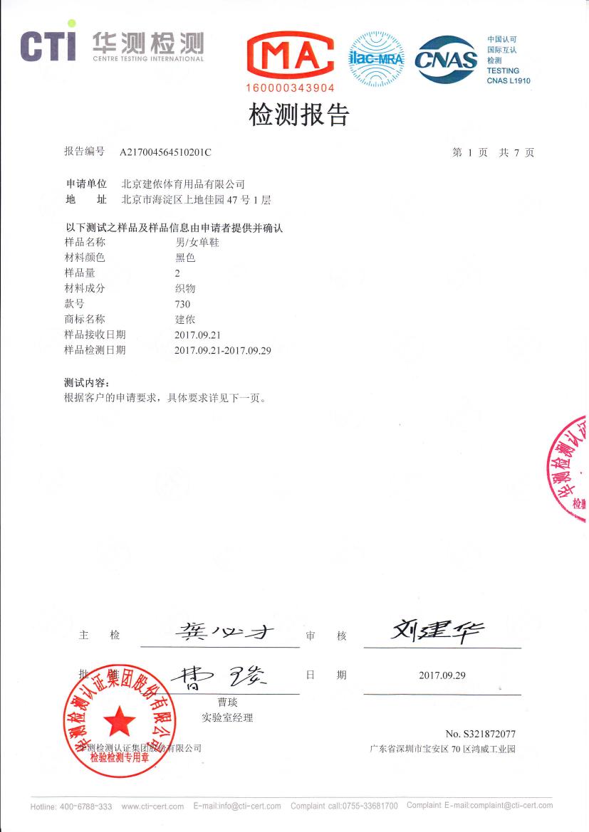 建侬730産品檢測報告