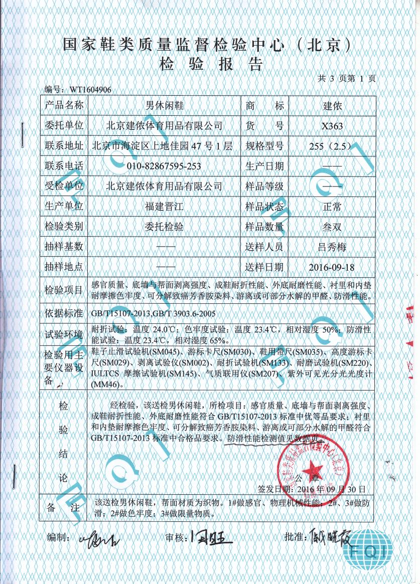 建侬363産品檢測報告