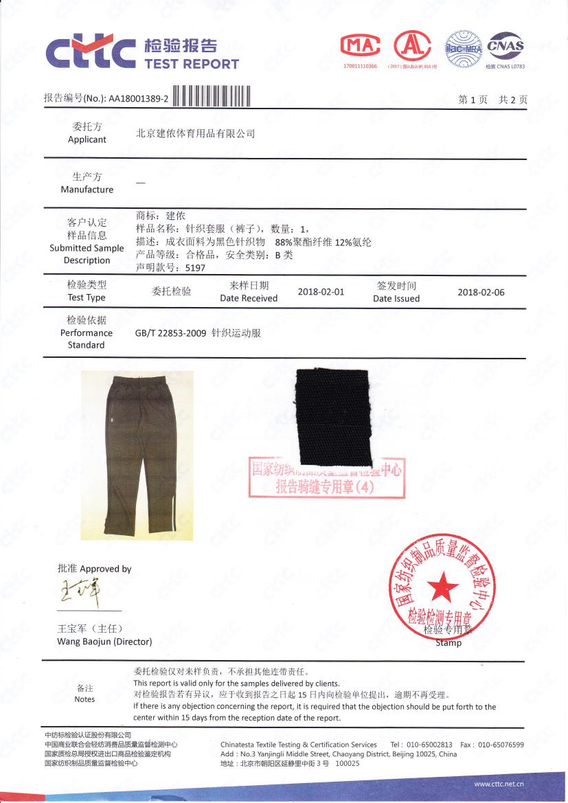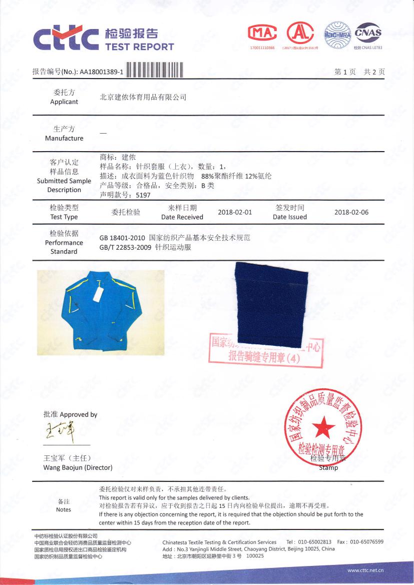 建侬5197産品檢測報告