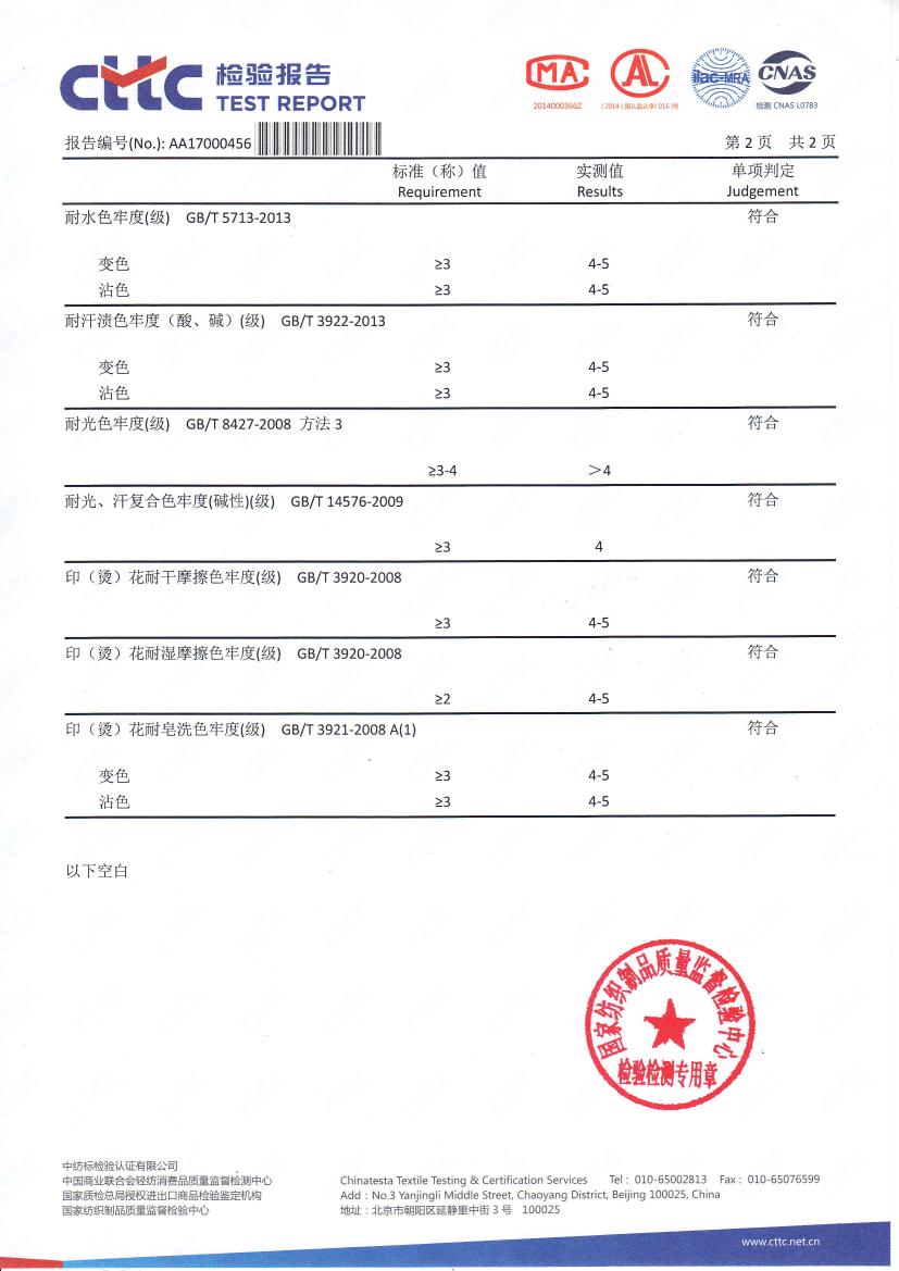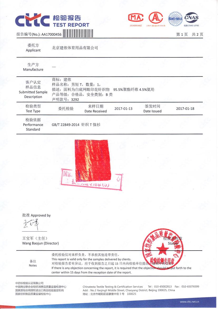 建侬3292産品檢測報告