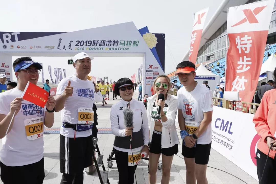 2019呼馬賽前準備階段,從左至右依次是:建侬體(tǐ)育馬拉松跑者郭超,人(rén)民網副總裁唐維紅,建侬體(tǐ)育品牌運營官石小(xiǎo)米