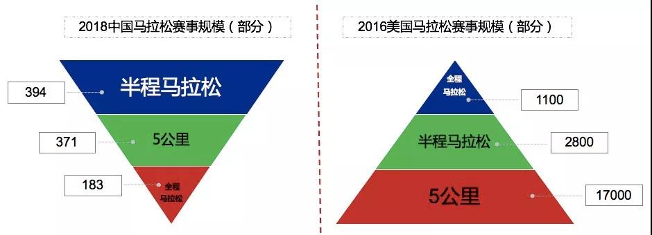 說到馬拉松想必絕大(dà)多(duō)數(shù)人(rén)都不陌生(shēng)了,說到健康中國想必大(dà)家(jiā)都知道(dào)它現在是國家(jiā)戰略。近幾年,中國馬拉松賽事場(chǎng)次的增長和(hé)跑者人(rén)數(shù)可(kě)謂是突飛猛進,但(dàn)相比金字塔結構的美國馬拉松賽事及參賽人(rén)員,中國的賽事結構卻呈現倒金字塔結構,并且參與健康跑(5K左右)的人(rén)數(shù)占比全馬和(hé)半馬之和(hé)也相差甚遠。由此可(kě)知,金字塔底層的普通(tōng)大(dà)衆能否跑起來(lái),是支撐中國馬拉松賽事能否穩健持續發展的關鍵。