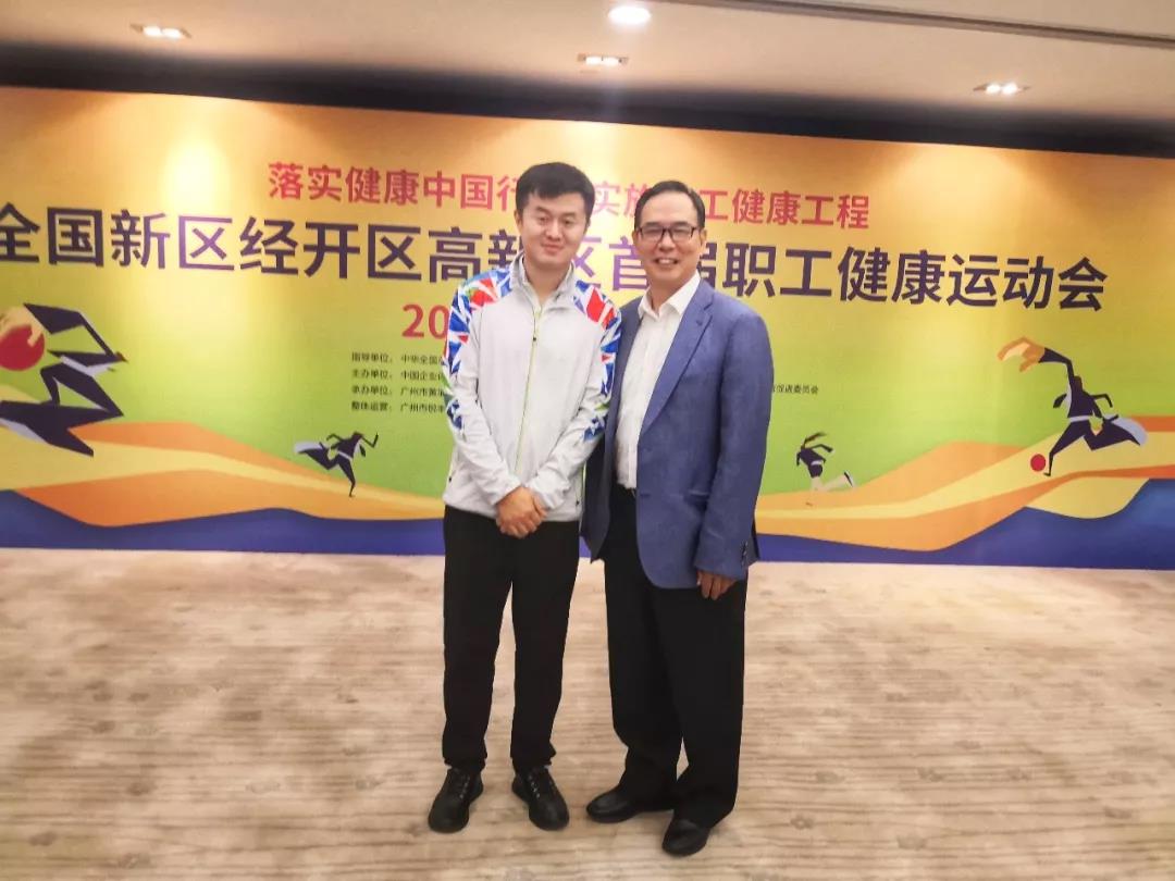 開(kāi)幕式當天,第十二屆全國政協副主席、民革中央原常務副主席齊續春,全國總工會(huì)副主席蔡振華,國家(jiā)體(tǐ)育總局群衆體(tǐ)育司副司長高(gāo)元義,國家(jiā)衛健委職業健康司副司長謝楊,全國總工會(huì)宣教部文體(tǐ)處處長閻偉,中國健康管理(lǐ)協會(huì)會(huì)長、解放軍總醫(yī)院原副院長郭渝成,中國企業體(tǐ)育協會(huì)主席冀運希,中國開(kāi)發區(qū)協會(huì)會(huì)長師(shī)榮耀,第十二屆全國政協社會(huì)和(hé)法制(zhì)委員會(huì)副主任、全國總工會(huì)原副主席、書(shū)記處書(shū)記張士平,第十二屆全國政協委員、中國企業體(tǐ)育協會(huì)新區(qū)經開(kāi)區(qū)高(gāo)新區(qū)職工體(tǐ)育促進會(huì)會(huì)長郭穩才,中國企業體(tǐ)育協會(huì)新區(qū)經開(kāi)區(qū)高(gāo)新區(qū)職工體(tǐ)育促進會(huì)副會(huì)長王英出席,黑龍江省上點舒華體育用品有限公司市場(chǎng)總監郭超受邀出席。▲全國總工會(huì)副主席蔡振華(右)與建侬體(tǐ)育市場(chǎng)總監郭超(左)