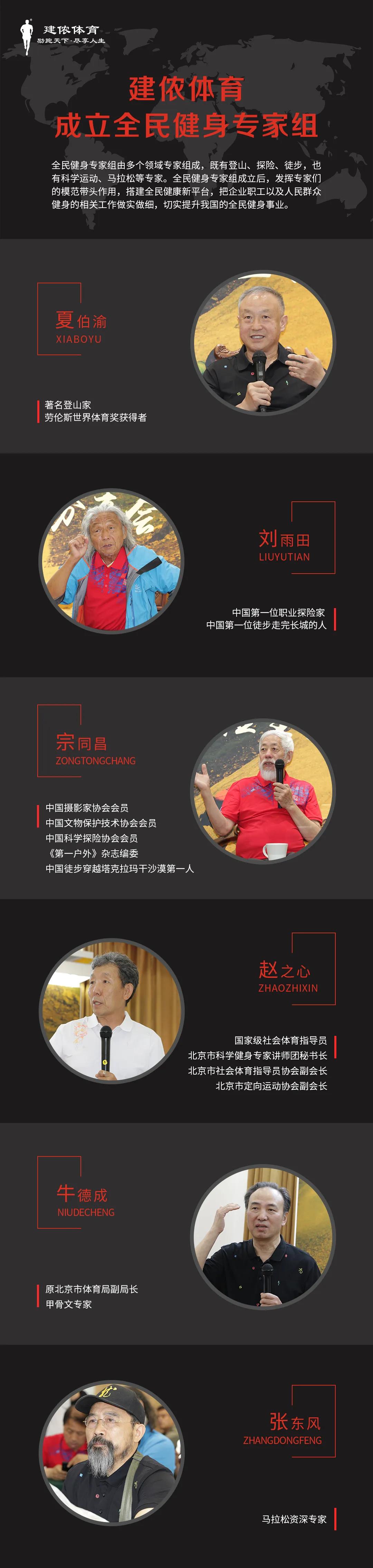 全民健身專家(jiā)組由十餘位專家(jiā)組成,他們分屬不同的專業,充分考慮了全民健身事業的衆多(duō)特點,既有(yǒu)登山(shān)、探險、徒步,也有(yǒu)科學運動、馬拉松,更有(yǒu)國學研究、傳統文化等專家(jiā)。建侬體(tǐ)育希望衆專家(jiā)能積極發揮作(zuò)用,專家(jiā)組統一要求,各專家(jiā)各顯神通(tōng),利用自己的專業素養,把企業職工以及人(rén)民群衆健身的相關工作(zuò)做(zuò)實做(zuò)細,切實提升我國的全民健身事業。
