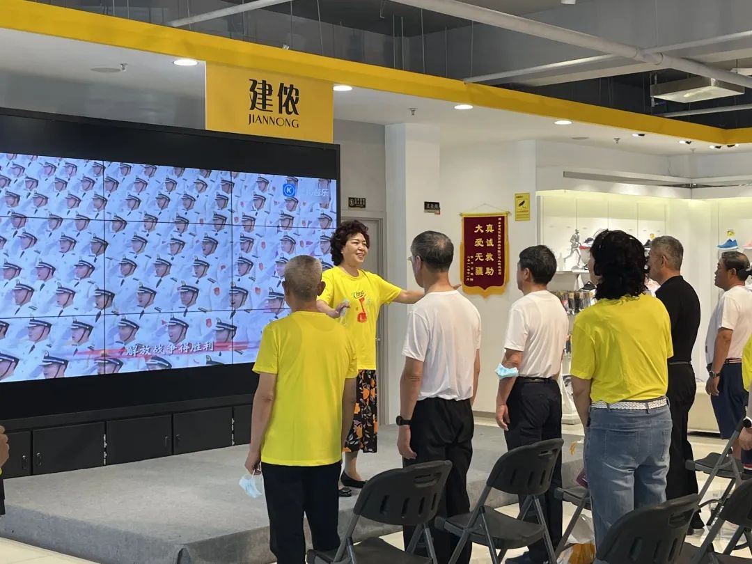 軍歌(gē)嘹亮,不忘初心。伴随着《人(rén)民軍隊忠于黨》的歌(gē)聲,全體(tǐ)老兵引吭高(gāo)歌(gē),縱情禮唱(chàng);他們身着建侬紅色文創主題服飾“不忘初心”、“中國聲音(yīn)”,用嘹亮歌(gē)聲再現黨的百年偉業華章,重溫一名老兵“永遠跟黨走”的摯誠初心